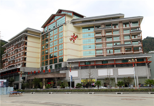 瑶都大酒店工程座落于来宾市金秀县, 本工程为普通高层旅馆,主体地下一层,地上十层,框架结构,地下室为车库,戊类车库及设备用房,并设计有独立的450m3地下消防水池层高3.6m;一~二层为商场,层高4.5m;三层为ktv包房3.3m;四~九层为客房,层高3.0m;十层为会议室及办公室层高3.8m,总建筑高度为44.75m,总建筑面积为18526.52m2该工程被评为2012年广西优质工程奖。
