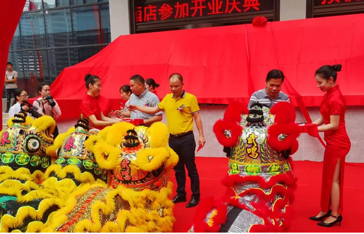 一场精彩绝伦的醒狮表演之后,礼仪小姐奉上朱砂笔,广西裕达投资控股集团董事副总裁邓亚德、邓伟生,副总裁梁锋、欧阳玲共同举笔为睡狮点睛,南宁裕达国际酒店的开业庆典正式开启。