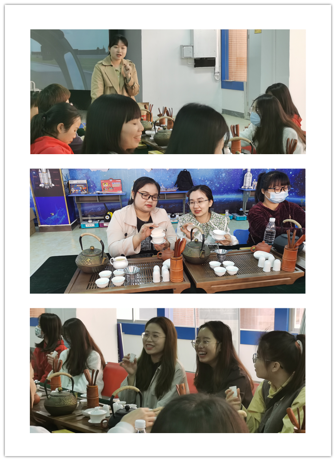 茶香清雅,茶意氤氲.......在茶艺老师的细心讲解下,大家了解了中国的茶文化、茶叶的分类以及各种茶叶的适宜人群;通过学习茶的礼仪、各类茶器以及其使用方法;大家纷纷举壶秀茶艺、低头品茶甘,一举一动间传递了女性的温柔及对中华传统文化热爱,沁润了自身素质和文化素养。
