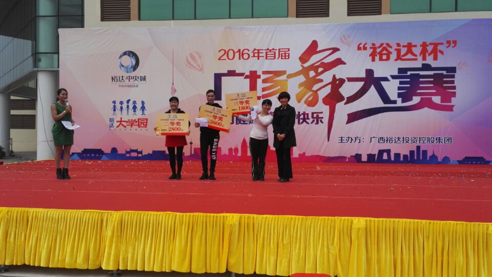 226日上午,2016首届“裕达杯”广场舞大赛在裕达大学园圆满谢幕,本次大赛有来自市区及兴宾区各个乡镇的21个队伍参赛,活动吸引了500余人到场。参赛者们精心准备的优美舞蹈,为现场观众呈现了一场绝美的舞蹈盛宴!