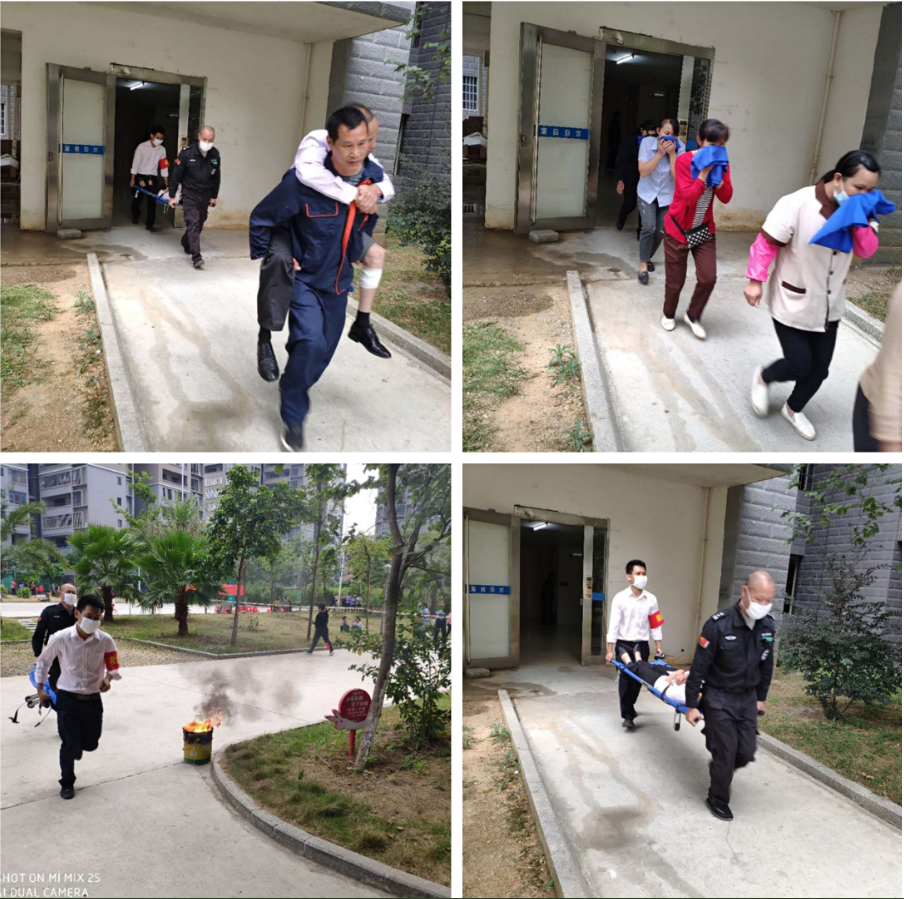 为了使得整个模拟演习更真实,现场邀请了兴宾消防支队与社区的医护人员到场协助指导工作。随着报警器的响起及烟雾的弥漫,公司扑救组、通讯组、设备组、疏散组、救护组等各组成员根据现场总指挥的安排,都能够沉着、冷静、有序完成急救扑火演练。演习通过模拟住宅起火、组织人员进行初期灭火、从紧急疏散通道逃生,训练穿越烟道,组织救护等项目,锻炼了员工及业主消防逃生自救能力。整个演练过程组织严密,模拟逼真,给小区物业工作人员和业主在思想上敲响了消防安全的警钟。