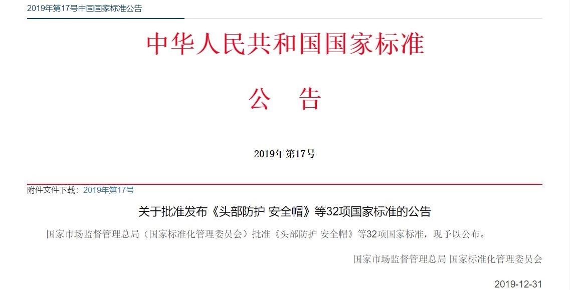 国家市场监管总局、国家标准委批准发布新版安全帽标准GB2811-2019《头部防护