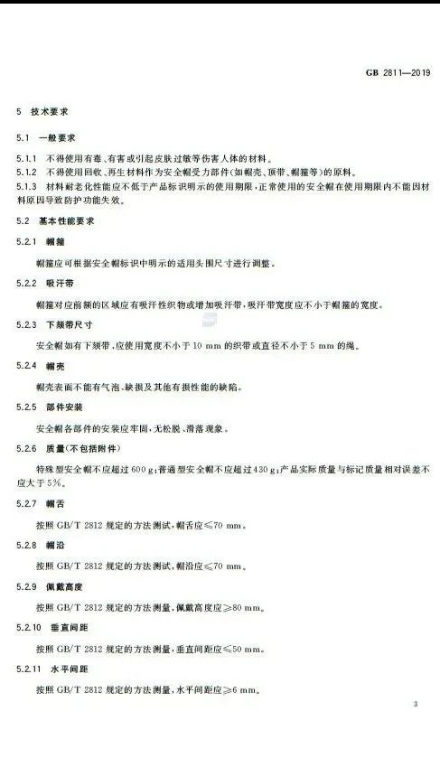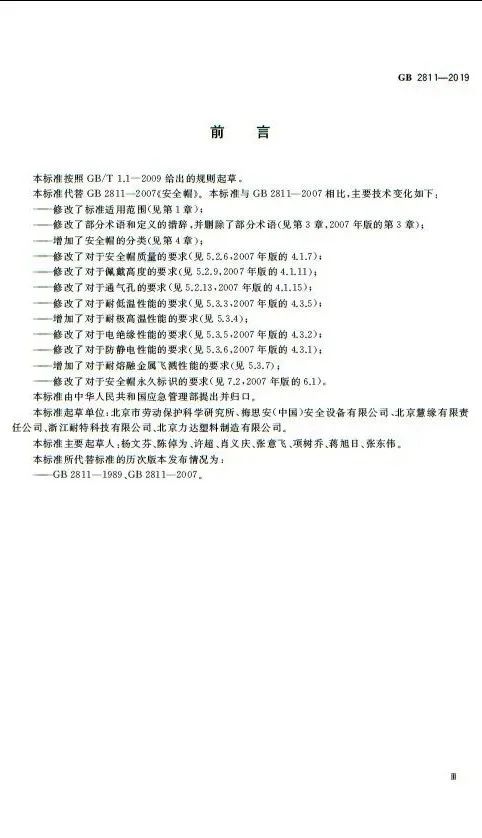 相比较于旧版GB2811-2007,新版安全帽标准GB2811-2019《头部防护